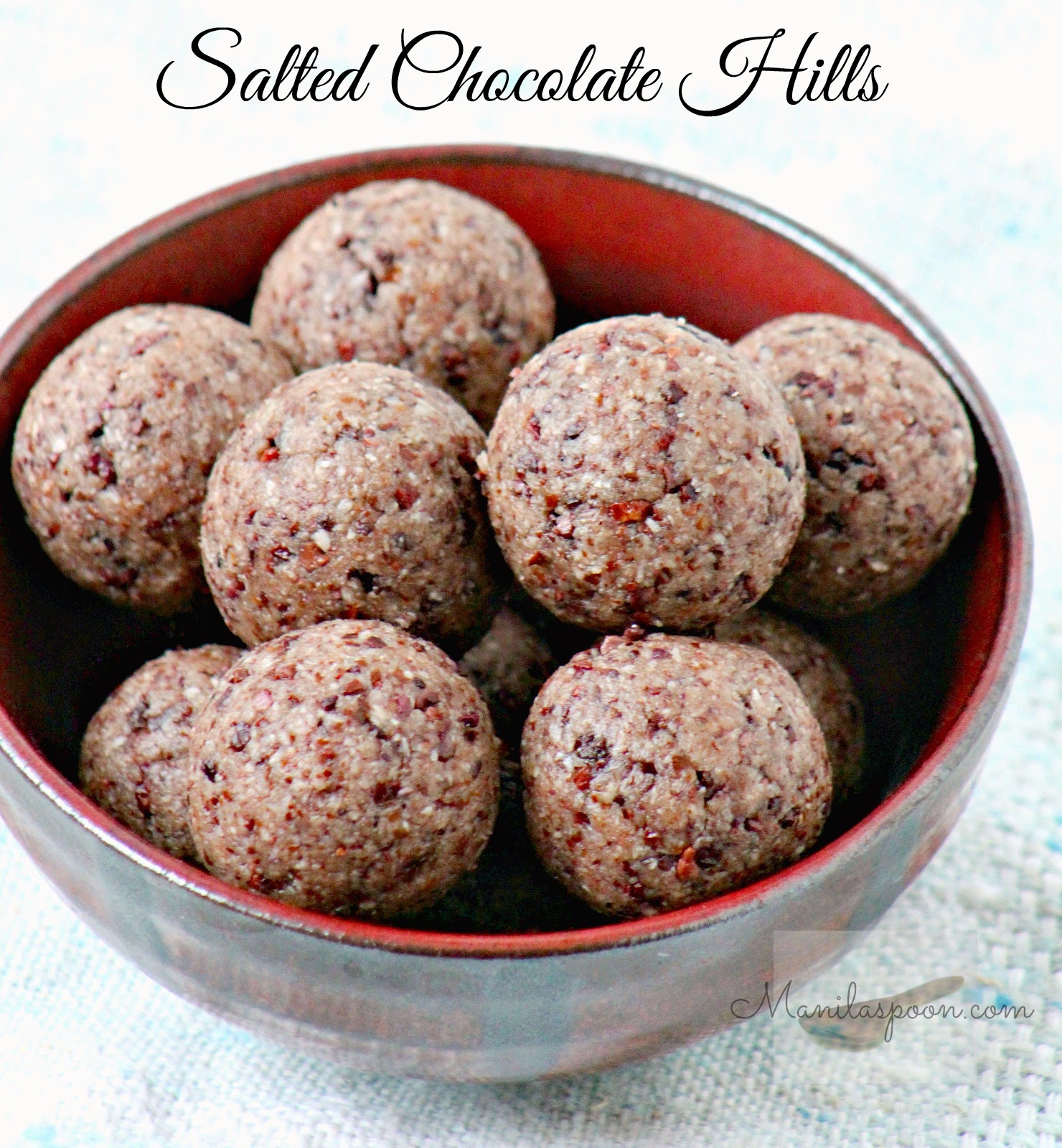 When he saw what these little chocolate balls looked like (quite dark brown), he said it reminded him of the famous natural wonder in the Philippines called Chocolate Hills in Bohol. Please find below the photo of what the Chocolate Hills look like. From a distance these tiny cone-shaped hills look like chocolate-covered mountains especially during the dry season when the grass has thinned out. He then told me why not name this particular dish – Chocolate Hills as they sort of look like them. Perhaps I need to work more on shaping these little mounds into cone-like structures so they look quite similar to the Chocolate Hills. In the meantime, I thought this should do. What do you think? 🙂