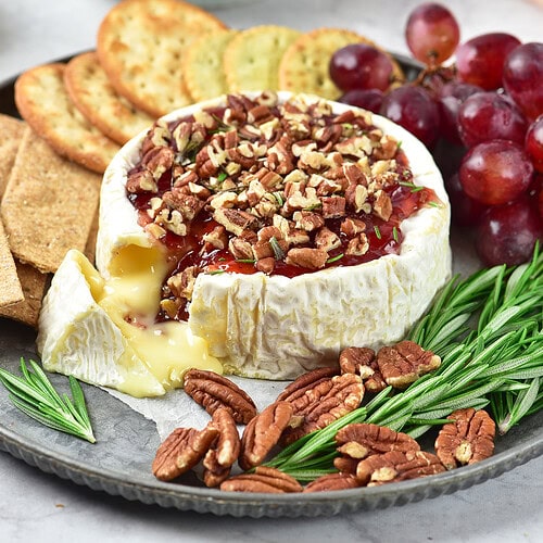 - Only a handful of ingredients: Brie, jam, nuts, maple syrup, and a touch of rosemary.