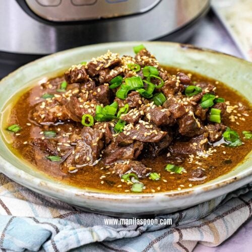 These Korean-style beef strips are melt-in-your-mouth tender and super tasty. The delicious marinade with garlic, ginger, soy sauce and sesame oil totally permeates the beef and gives it so much flavor. Plus, it’s cooked in the instant pot so it’s a breeze to make.