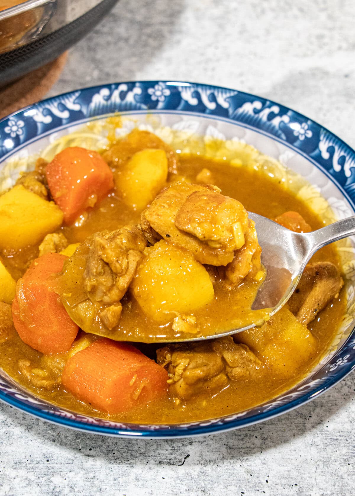 1. Prep the chicken and veggies: Pat the chicken thighs dry and season lightly with salt and pepper. Cut into bite-sized pieces. Prepare the onions, carrots, potatoes, garlic, and ginger. This mise en place makes everything smooth sailing.