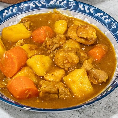 - Prep the chicken and veggies: Pat the chicken thighs dry and season lightly with salt and pepper. Cut into bite-sized pieces. Prepare the onions, carrots, potatoes, garlic, and ginger. This mise en place makes everything smooth sailing.
