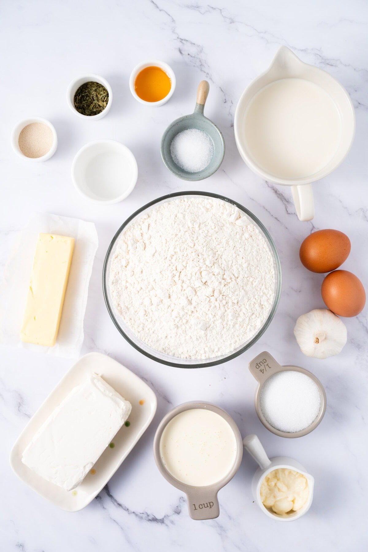 Ingredients for Korean Cream Cheese Garlic Buns from scratch