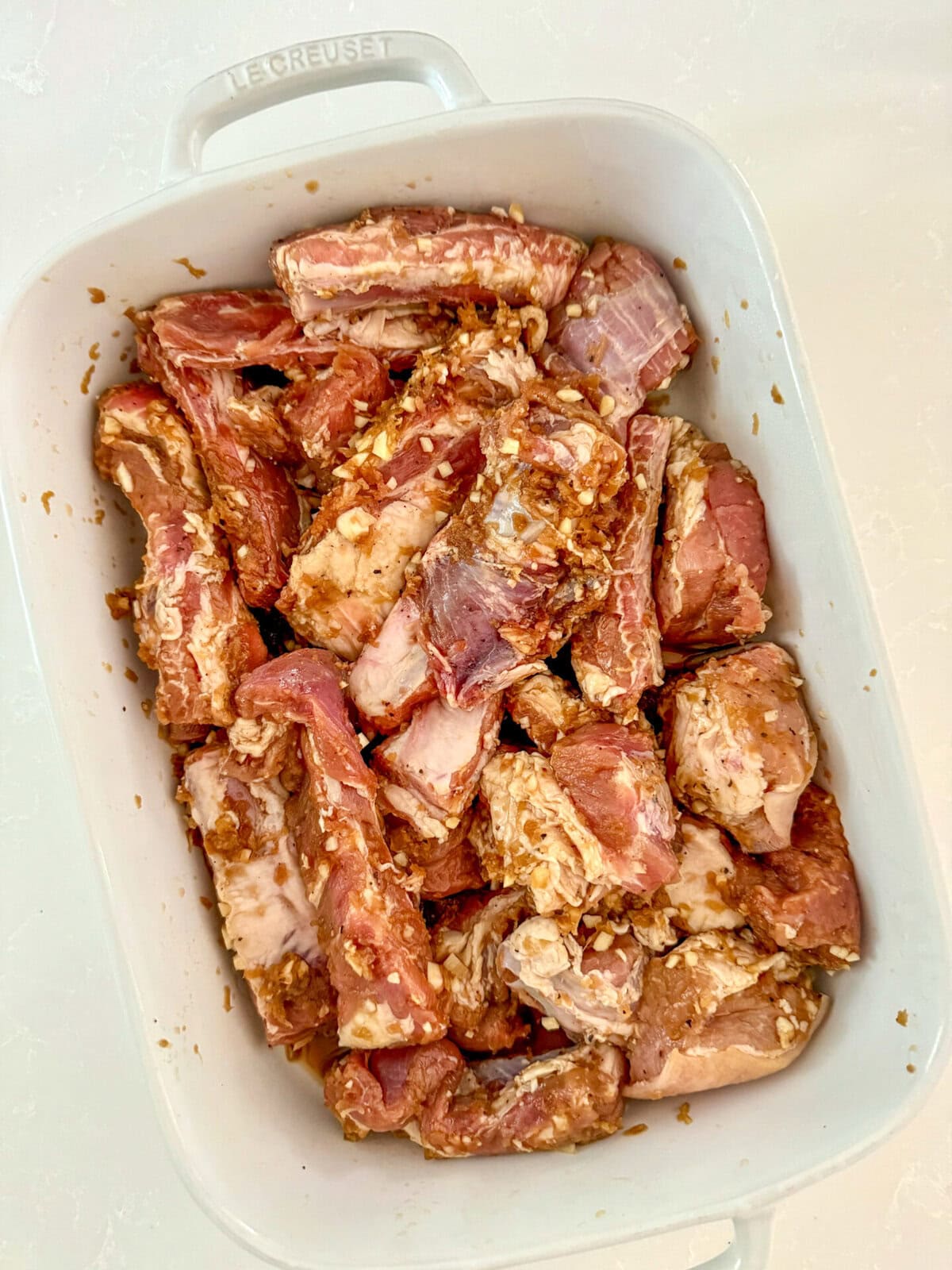 - Prepare the meat by removing the membrane from the back of the ribs. Season the pork ribs with salt and pepper. Massage the marinade into the seasoned pork ribs using your hands. This method allows the marinade to fully infuse into the pork. Marinate for several hours (at least 4) or overnight (for more flavor).