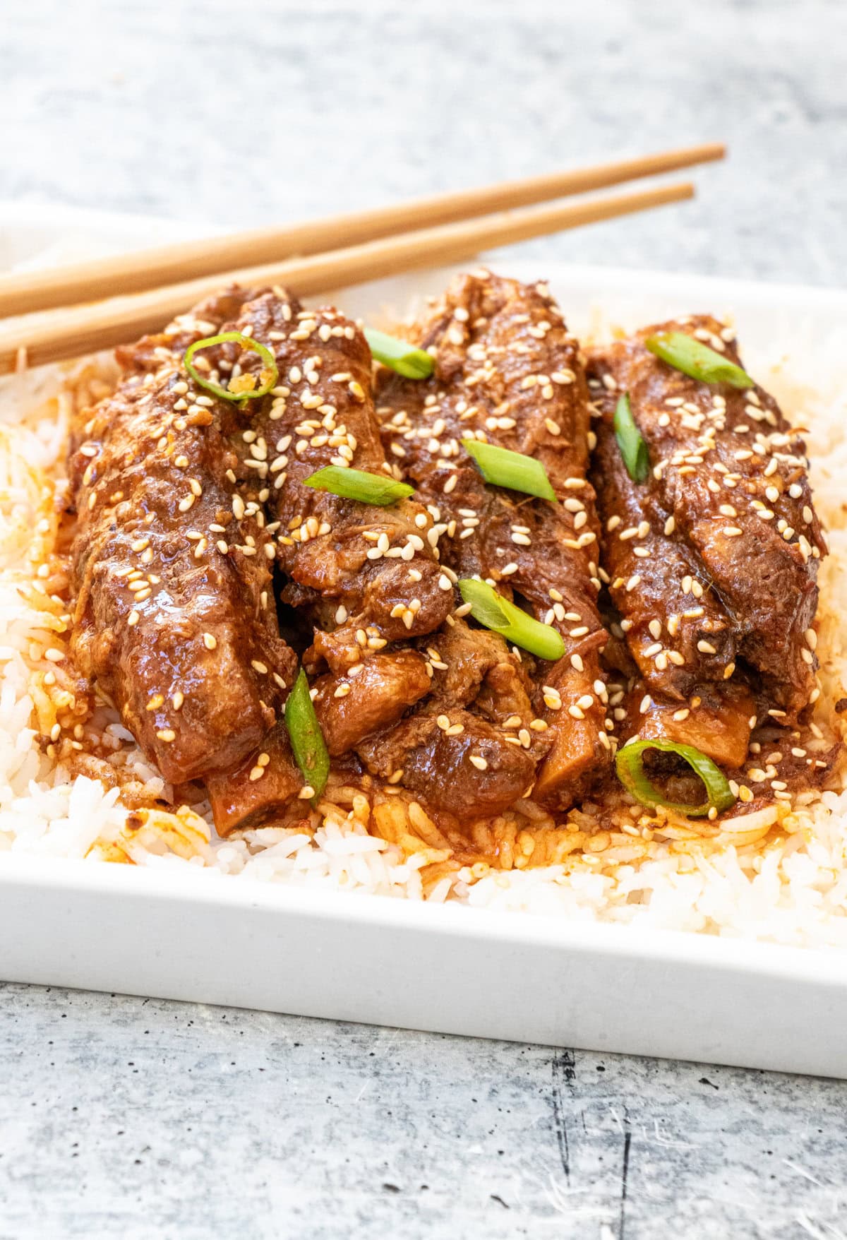 Cover and cook on LOW for 6–8 hours or HIGH for 4 hours, until the pork ribs are melt-in-your-mouth tender and the sauce has thickened.