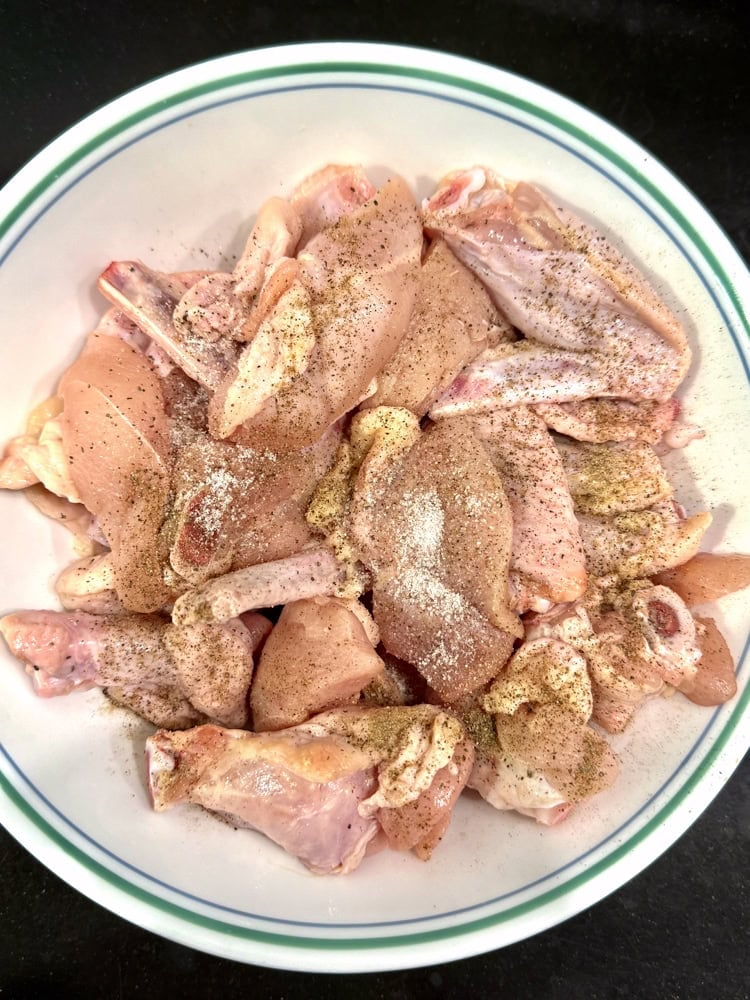 - 2 lbs chicken pieces, cut up (thighs, wings, or drumettes work best)