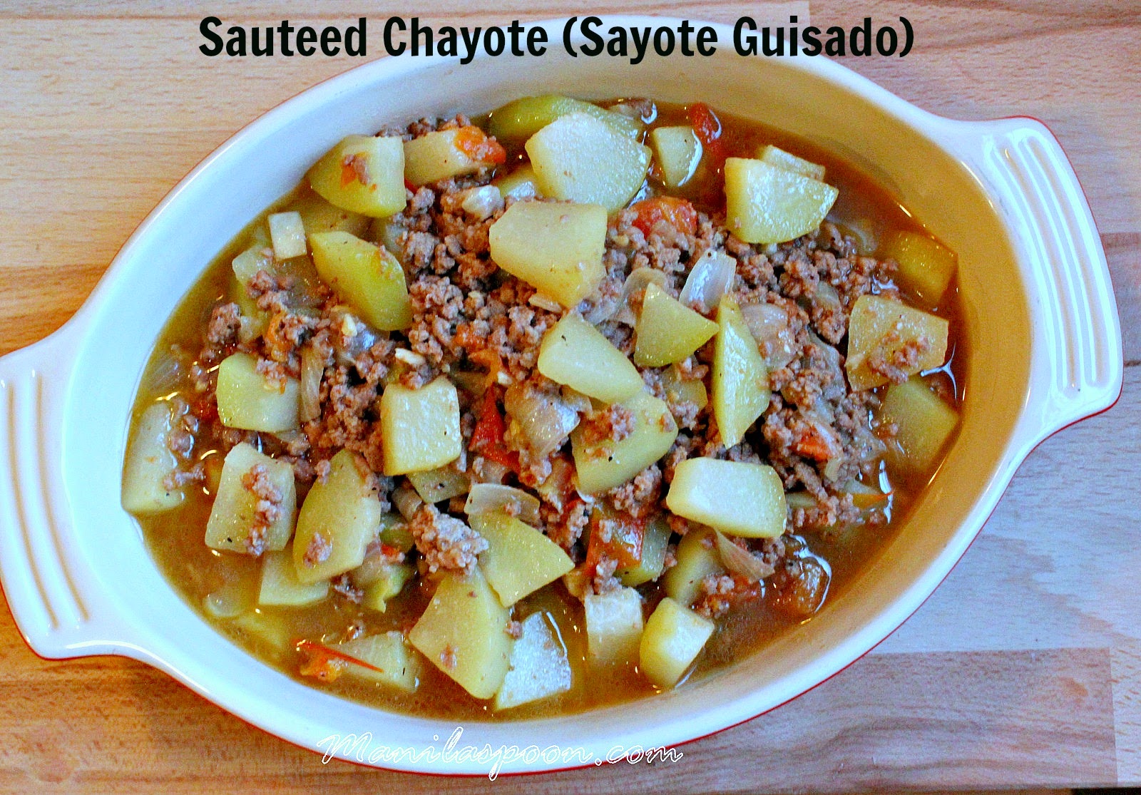 When I was still in the Philippines and living with my family, this dish was on our table every week. We truly love all kinds of squashes especially Chayote (called Sayote in the Philippines). It such a well-loved dish that you can find Sayote Guisado in any cafeteria or canteen all over the country during lunch time. I often had this for lunch when I still worked for the Supreme Court. It’s almost like a soup that you have on the side, though it really isn’t a soup at all but more like a stew. And, you often serve this with rice. It’s also pretty cheap to prepare yet quite nutritious, too. You can make this dish with just chayote on its own but you can certainly add other vegetables like cauliflower or broccoli to the mix.