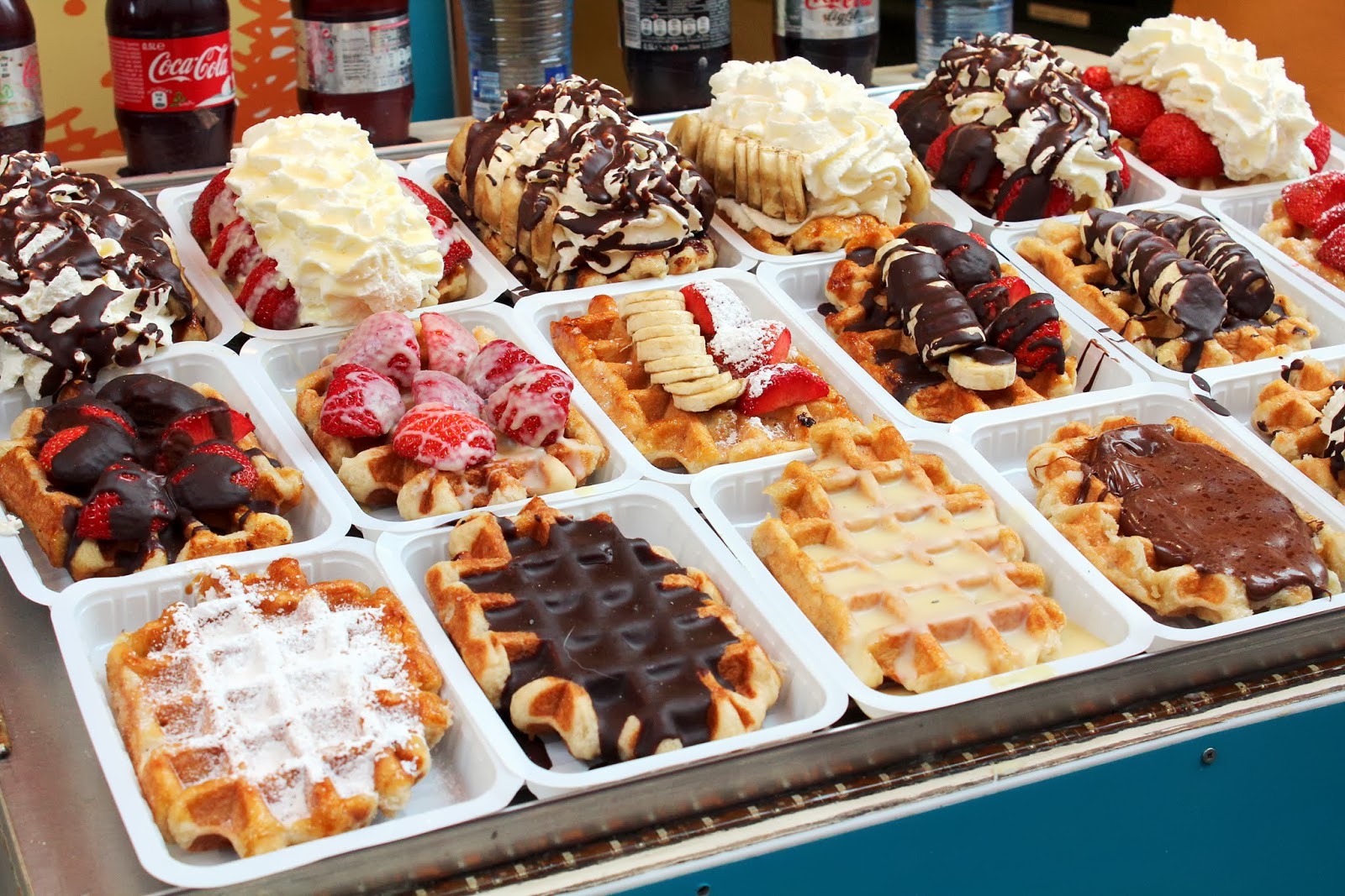Brussels and Belgium in general are also quite famous for their amazing Waffles…I must admit I had quite a few of these. How can you say no to these? One was covered in White Chocolate and the other with Strawberry Sauce, both perfectly delish!